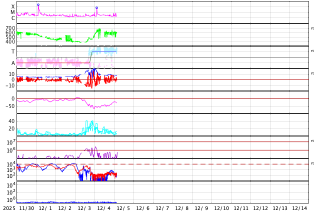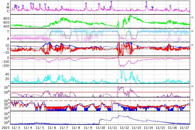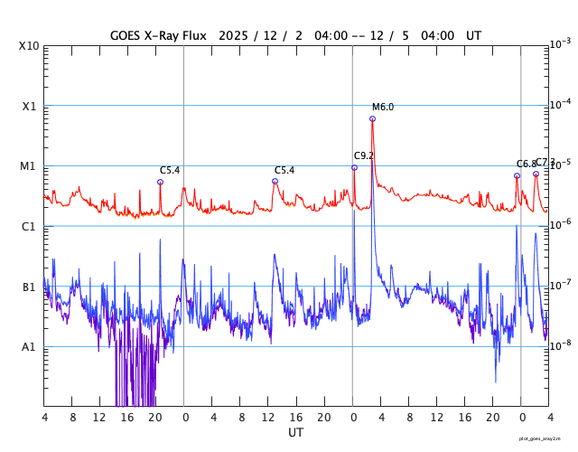 GOES衛星の太陽X線強度。赤・橙 = 0.1〜0.8 nm、青・紫 = 0.05〜0.4 nm (c) データ:NOAA/SWPC、作図:宇宙天気ニュース ![]() | |||||||||||||||||||||||||||||||||||||||||||||||||||||||||||||||||||||||||||||||||||||||||||||||||||||||||||||||||||||||||||||||||||||||||||||||||||||||||||||||||||||||||||||||||||||||||||||||||||||||||||||||||||||||||||||||||||||||||||||||||||||||||||||||||||||||||||