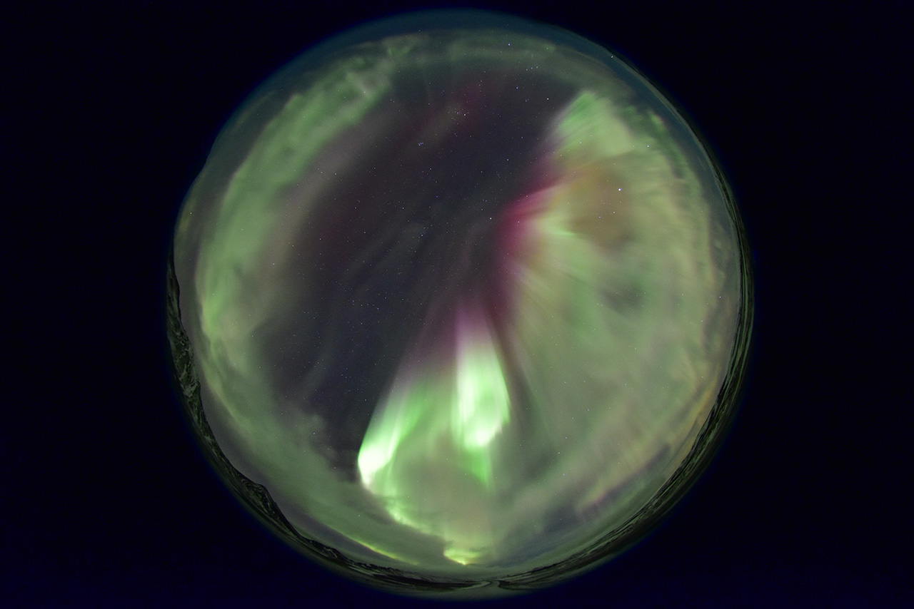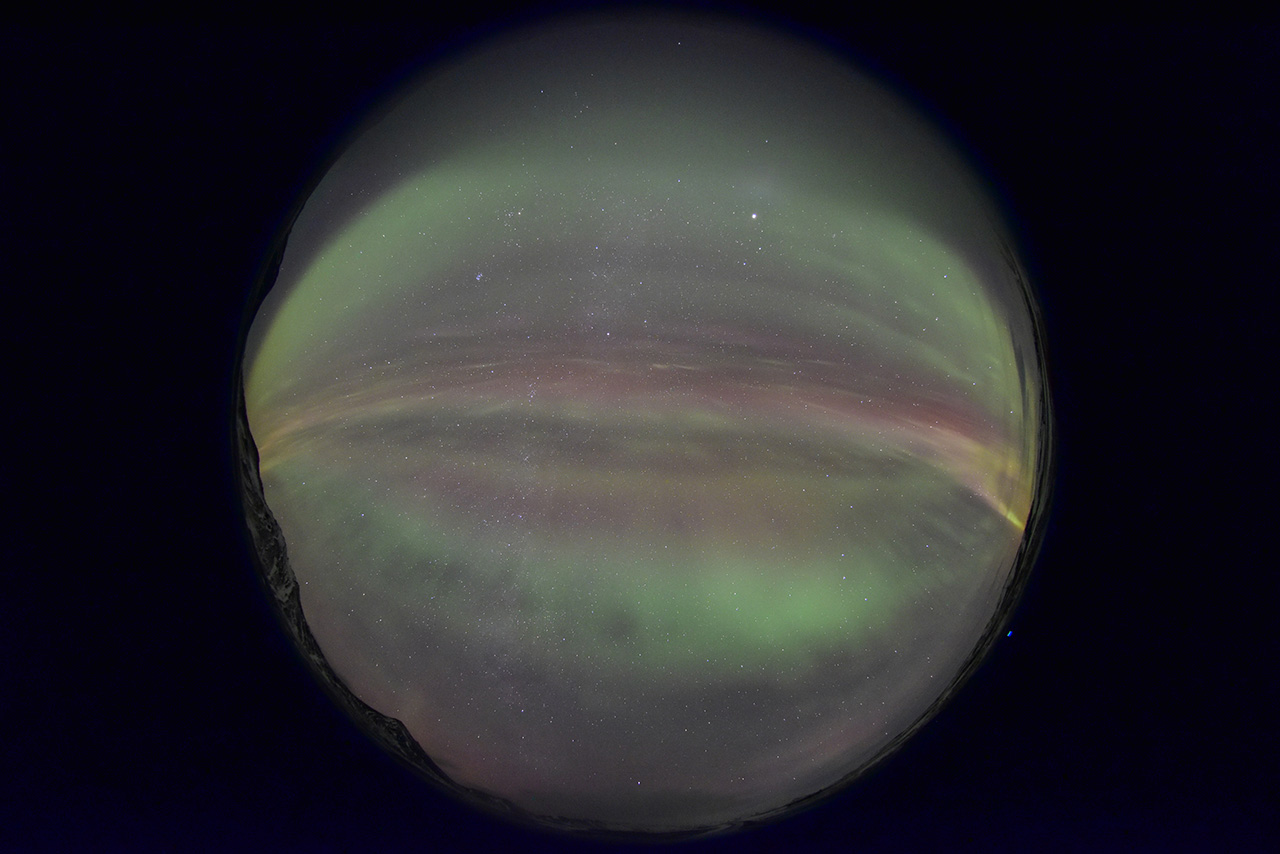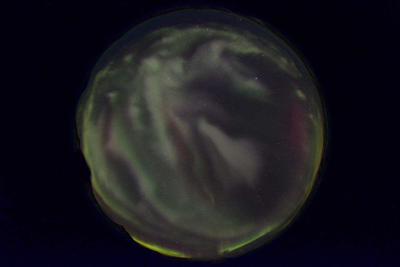 2025/12/23 12:45 更新 太陽風の速度は700km/秒に高まっています。アイスランドのオーロラをどうぞ。 担当 篠原 アイスランドに滞在中の藤井哲也さんと高家幹夫さんより、 今回の高速太陽風が始まった直後の夜、 現地21日深夜から22日にかけて撮影されたオーロラの写真をいただきました。 昨日のニュースでお知らせした様に、 太陽風の速度は世界時21日8時頃に600km/秒に高まり、 磁気圏の活動も強まって、AE指数は変化が大きくなりました。 写真は、それから半日ほど過ぎた現地21日の深夜の撮影です。 1〜3枚目の写真では、オーロラが全天を覆う様に激しく輝いています。 AE指数は、1200nTに達する大きい変化が発生しています(昨日掲載の図)。 4枚目の写真は、3枚目の左側の山とオーロラに向かっています。 1枚目は宿の駐車場でとりあえず撮影したそうで、 2枚目以降は数キロ離れた光害のない場所です。 5枚目の頃から、AE指数の変化は小さくなっています。 オーロラの光が弱くなっているのは、これと対応しているのかもしれません。 それでも、6枚目のオーロラが何重にも重なって見える様子はとても美しいです。 藤井さんによると、この夜は快晴で、気温は0度、 時々突風が吹くので、三脚の転倒対策を行うことが必要だったそうです。 太陽風の状況が変わったことで、 「今までとは違うオーロラが出現した」とのことで、 広大な原野で時間の経つのも忘れ、 いろいろな形や濃さが変化していくのに感動したそうです。 にぎやかにオーロラが輝く写真をどうもありがとうござます。 既に次の夜の写真もいただいているのですが、 今日は高速太陽風の始まりの頃のオーロラを紹介します。 太陽風は、高速の状態が続いています。 速度は680km/秒から750km/秒に高まり、 最後は700km/秒に少し下がっている様です。 磁場強度は、6〜7nTと平均的な値です。 SDO衛星AIA193では、コロナホールは西側(右側)に進み、 この領域の影響が地球にやって来ているのでしょう。 そして、コロナホールは、南東の端(左下)にかけて大きく広がっています。 次第に緯度が高くなっていますが、 27日周期の図の前周期の変化を参考にすると、 太陽風速度の高まりは、5日後の28日くらいまで続くかもしれません。 磁気圏の活動も活発で、 AE指数は、500nT前後の変化が頻繁に発生し、 1500nTに達する大きい活動も起きています。 引き続き注目して下さい。 太陽は、北東側(左上)の4317黒点群で C8.6の小規模フレアが発生しています。 目立つフレアはこれくらいですが、 可視光写真では、黒点群が増えています。