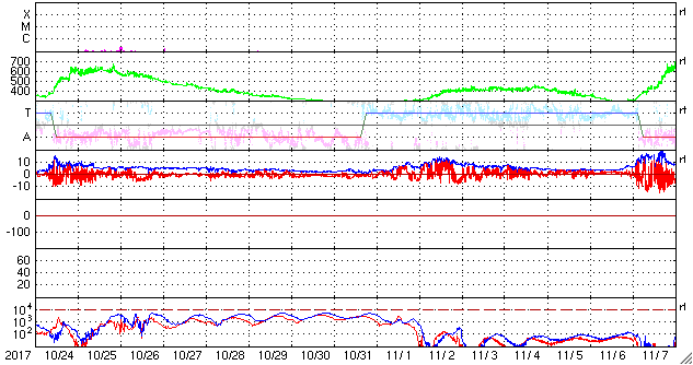 2017/11/21 15:05 高速太陽風が到来し、磁気圏の活動も高まっています。