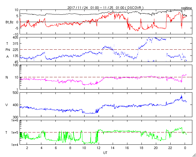 2017/11/24 14:22 太陽風は低速風に変わりかけています。