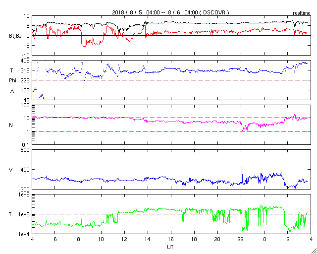 - 2018/ 8/ 5 11:31 太陽風は低速になり、磁気圏も穏やかです。