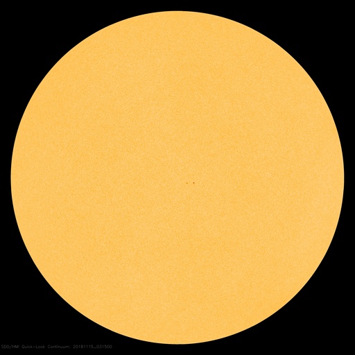 2018/11/15 12:40 更新 太陽の中央に新しい黒点が現れました。太陽風は平均的な状態です。 担当 篠原 今日の未明に、太陽の中心部に新しい黒点が発生しています。 赤道に近く、磁場の並びは、となりの2726黒点群と同様、 現在の第24活動周期の順番です。 まだ番号は付いていませんが、 いつもの可視光写真でもはっきりと見えています。 新しい活動周期の黒点は、 緯度は30度程度と赤道から少し離れた場所に現れます。 次はいつ出現するでしょうか。 2726黒点群は、かなり見にくくなっています。 太陽風は、400km/秒と平均的な速さです。 磁場強度も、4nTと平均的です。 磁場の南北成分は、北寄りの傾向が続いていて、 時々小さく南に振れる程度です。 磁気圏は穏やかで、AE指数はほとんど変化が見られません。 SDO衛星AIA193では、 極域や高緯度域にコロナホールは見えていますが、 赤道、低緯度域に濃い広がりはありません。 太陽風は穏やかな状態が続きそうです。 ![]() 太陽の中心部に現れた黒点は、第24活動周期の磁場の並びになっています。SDO衛星。 (c) SDO (NASA)、作図:宇宙天気ニュース ![]() SDO衛星のAIA193カメラによる太陽コロナの様子 (c) SDO (NASA) ![]() SDO衛星による太陽の可視光写真。マウスの矢印を写真に重ねると、黒点番号付きの写真に切り替わります。 (c) SDO (NASA) ![]() GOES衛星の太陽X線データ (c) NOAA/SWPC ![]() DSCOVRが観測した太陽風の磁場(1番上の枠、黒線は全体の強度、赤線は南北成分) および、太陽風の密度(3番目の紫線)、速度(4番目の青線) (c) データ:NOAA/SWPC、作図:宇宙天気ニュース ![]() AE指数(速報値) 下段のAEグラフの値が高くなると、オーロラ活動が活発化しています。 (c) 京都大学WDC ![]() ![]() 27日の太陽周期に合わせたデータプロット 太陽が同じ面を地球に向けていた27日前の変化から、今後を予想することができます。 (c) 作図:宇宙天気ニュース