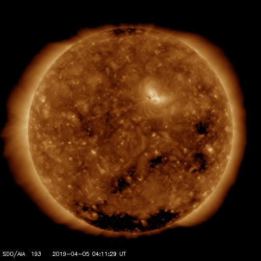 2019/ 4/ 4 12:31 2737黒点群は小さくなっています。太陽風は平均的な速度が続いています。