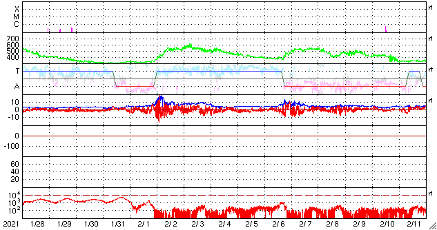 GOES衛星の太陽X線強度。赤・橙 = 0.1〜0.8 nm、青・紫 = 0.05〜0.4 nm (c) データ:NOAA/SWPC、作図:宇宙天気ニュース ![]() | ||||||||||||||||||||||||||||||||||||||||||||||||||||||||||||||||||||||||||||||||||||||||||||||||||||||||||||||||||||||||||||||||||||||||||||||||||||||||||||||||||||||||||||||||||||||||||||||||||||||||||||