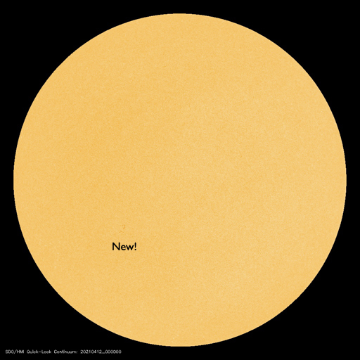 2021/ 4/11 13:18 低速の太陽風が続いています。太陽に小さい黒点が現れています。