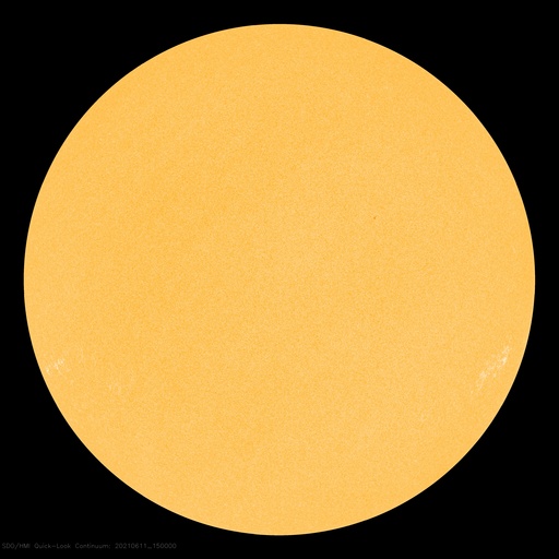 SDO衛星による太陽の可視光写真。12日0時(世界時11日15時)の画像です。