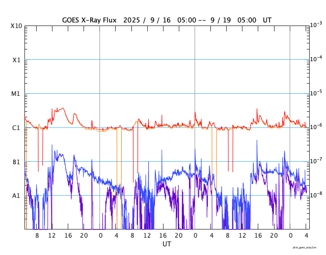 GOES衛星の太陽X線強度。赤・橙 = 0.1〜0.8 nm、青・紫 = 0.05〜0.4 nm (c) データ:NOAA/SWPC、作図:宇宙天気ニュース ![]() | |||||||||||||||||||||||||||||||||||||||||||||||||||||||||||||||||||||||||||||||||||||||||||||||||||||||||||||||||||||||||||||||||||||||||||||||||||||||||||||||||||||||||||||||||||||||||||||||||||||||||||||||||||||||||||||||||||||||||||||||