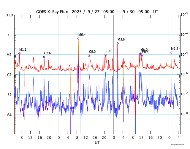 GOES衛星の太陽X線強度。赤・橙 = 0.1〜0.8 nm、青・紫 = 0.05〜0.4 nm (c) データ:NOAA/SWPC、作図:宇宙天気ニュース ![]() | |||||||||||||||||||||||||||||||||||||||||||||||||||||||||||||||||||||||||||||||||||||||||||||||||||||||||||||||||||||||||||||||||||||||||||||||||||||||||||||||||||||||||||||||||||||||||||||||||||||||||||||||||||||||||||||||||||||||||||||||||||||||||||||||||||||||||||||||||||||||||||||||||||||||||||||||||||||||||||||||||||||||||||||||||||||||||