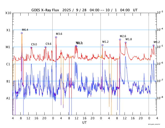 GOES衛星の太陽X線強度。赤・橙 = 0.1〜0.8 nm、青・紫 = 0.05〜0.4 nm (c) データ:NOAA/SWPC、作図:宇宙天気ニュース ![]() | ||||||||||||||||||||||||||||||||||||||||||||||||||||||||||||||||||||||||||||||||||||||||||||||||||||||||||||||||||||||||||||||||||||||||||||||||||||||||||||||||||||||||||||||||||||||||||||||||||||||||||||||||||||||||||||||||||||||||||||||||||||||||||||||||||||||||||||||||||||||||||||||||||||||||||||||||||||||||||||||||||||