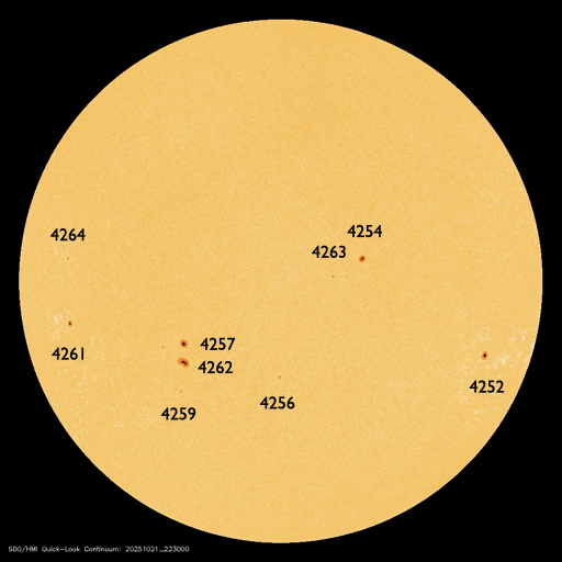22日9〜10時(世界時22日0〜1時)に、4257群と4259群で発生したC4.4とC4.7の小規模フレア。