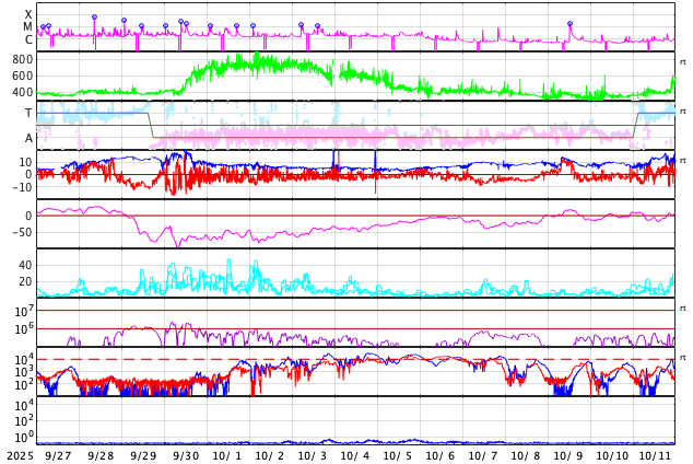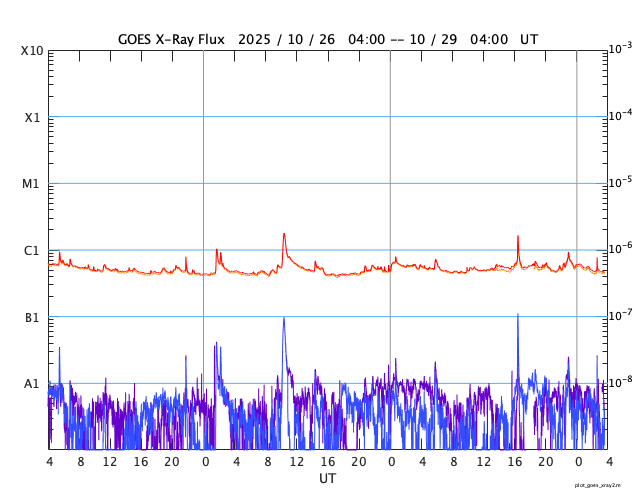 GOES衛星の太陽X線強度。赤・橙 = 0.1〜0.8 nm、青・紫 = 0.05〜0.4 nm (c) データ:NOAA/SWPC、作図:宇宙天気ニュース ![]() | ||||||||||||||||||||||||||||||||||||||||||||||||||||||||||||||||||||||||||||||||||||||||||||||||||||||||||||||||||||||||||||||||||||||||||||||||||||||||||||||||||||||||||||||||||||||||||||||||||||||||||||||||||||||||||||||||||||||