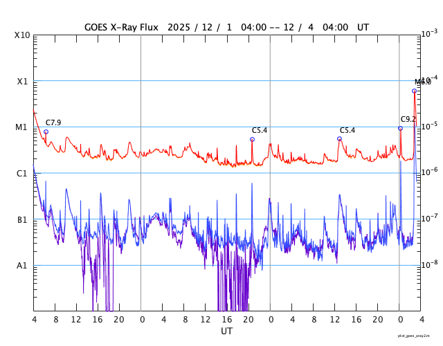 GOES衛星の太陽X線強度。赤・橙 = 0.1〜0.8 nm、青・紫 = 0.05〜0.4 nm (c) データ:NOAA/SWPC、作図:宇宙天気ニュース ![]() | |||||||||||||||||||||||||||||||||||||||||||||||||||||||||||||||||||||||||||||||||||||||||||||||||||||||||||||||||||||||||||||||||||||||||||||||||||||||||||||||||||||||||||||||||||||||||||||||||||||||||||||||||||||||||||||||||||||||||||||||||||||||||||||||||||||||||||||||||||||||||