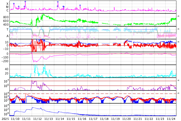 GOES衛星の太陽X線強度。赤・橙 = 0.1〜0.8 nm、青・紫 = 0.05〜0.4 nm (c) データ:NOAA/SWPC、作図:宇宙天気ニュース ![]() | |||||||||||||||||||||||||||||||||||||||||||||||||||||||||||||||||||||||||||||||||||||||||||||||||||||||||||||||||||||||||||||||||||||||||||||||||||||||||||||||||||||||||||||||||||||||||||||||||||||||||||||||||||||||||||||||||||||||||||||||||||||||||||||||||||||||||||||||||||||||||||||||||||||||||||||||||||||||||||||