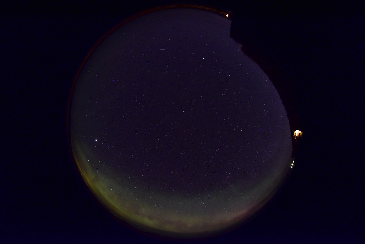 2025/12/22 12:55 更新 太陽風の速度は680km/秒に高まっています。アイスランドのオーロラをどうぞ。 担当 篠原 アイスランドに滞在中の藤井哲也さんより、 現地21日未明と朝の時間に撮影されたオーロラの写真をいただきました。 撮影場所は、ミーヴァトン湖畔から80kmほど移動した場所とのことで、 真っ黒な溶岩や火山を真っ白な雪が覆っているそうです。 1枚目は、この直前まで曇っていて、 やっと星空が見えて撮影できたとのことです。 AE指数を見ると、この少し前に500nTの変化が起きていたのですが、 この撮影の頃には変化が小さくなっています。 写真のオーロラが穏やかなのは、 変化が落ち着いたタイミングだったためかもしれません。 2枚目は時間としてはすっかり朝になっています。 快晴で満天の星空だったそうです オーロラは北の空に低く見えていたとのことです。 この頃から、太陽風の速度が高まって、オーロラの活動が強まって来ました。 次の夜からは状況が大きく変わるかもしれません。 現地の貴重な情報をどうもありがとうございます。 太陽風は、昨日のニュースの後から速度が高まっていき、 400km/秒と平均的な状態から、夕方には600km/秒に高まりました。 今朝になるともう一段高まって、現在は680km/秒で推移しています。 磁場強度は、グラフの前半は12nTに強まっていますが、 後半で少し下がり、現在は8nT程度です。 磁場の南北成分は、南北にある程度の振幅で変化を繰り返しています。 磁気圏の活動は強まって、 AE指数は、800〜1200nTと大きい変化が繰り返し発生しています。 グラフの最後は変化が少し下がっていて、 300nT程度の小規模になっています。 SDO衛星AIA193では、中心部のコロナホールは西側に進んでいますが、 速度の高まりのタイミングは少し早かった印象で、 27日周期の図の前周期の太陽風と同じ様な変化になっています。 コロナホールは、南東側(左下)に大きく広がっています。 前周期と同様に、高速風は長い期間続きそうです。 注目して下さい。 太陽は、南東の4316黒点群で、 M1.3の中規模フレアが発生し、 その後もC3.9、C6.3、C4.0、C6.2などの小規模フレアが続いています。 この後も活動が見られるでしょうか。