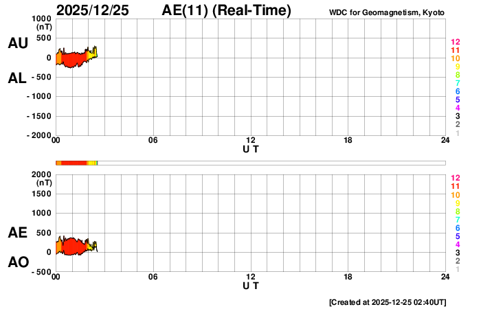 GOES衛星の太陽X線強度。赤・橙 = 0.1〜0.8 nm、青・紫 = 0.05〜0.4 nm (c) データ:NOAA/SWPC、作図:宇宙天気ニュース ![]() | ||||||||||||||||||||||||||||||||||||||||||||||||||||||||||||||||||||||||||||||||||||||||||||||||||||||||||||||||||||||||||||||||||||||||||||||||||||||||||||||||||||||||||||||||||||||||||||||||||||||||||||||||||||||||||||||||||||
