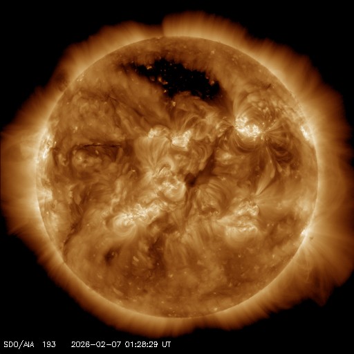 太陽の北半球の高緯度寄りにコロナホールが広がっています。