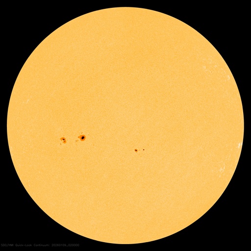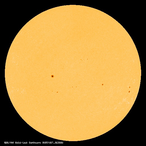 による太陽の可視光写真。マウスの矢印を写真に重ねると、黒点番号付きの写真に切り替わります。