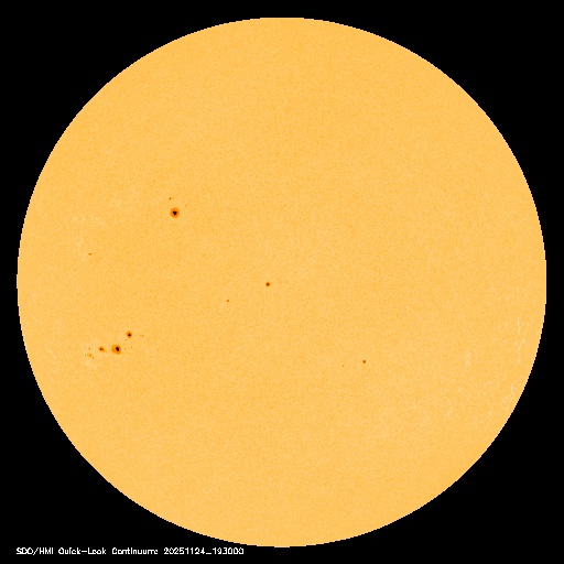 による太陽の可視光写真(SOHO衛星の画像ページより取得)。